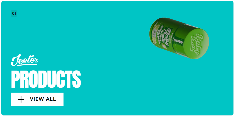 Slide BackgroundNEW PRODUCTALL-IN-ONE VAPESLiquid Diamonds & Live resin Learn moreSlide BackgroundNEW TERRITORYMISSOURINOW AVAILABLESlide BackgroundCALIFORNIA ONLYJEETER RESSERVexclusively at jeeter reserve locations Learn moreSlide BackgroundBOUTIQUE DROPGAME DAY 2026RICKY WILLAMS | CALVIN JOHNSON| MARHAWN LYNCH Learn moreSlide BackgroundJEETER APPARELGAME DAYCOLLECTION AVAILABLE 1.29Slide BackgroundNEW POP-UPJEETER MILLE HIGH POP-UPCALIFORNIA • ARIZONA • MICHIGAN • MASSACHUSETTS • NEW YORK • CANADA TOUR DATES HERESlide BackgroundMASS EXCLUSIVEPREMIUM DIAMOND CARTSLEARN MORESlide BackgroundROSIN ENHANCED LEARN MORESlide BackgroundNEW PROMOJEETER HOOK UP DAYLEARN MORESlide BackgroundNOW AVAILABLEJEETER NY LEARN MORESlide BackgroundMERCHJEETER APPARELLEARN MORE FIND JEETERS NEAR YOU!