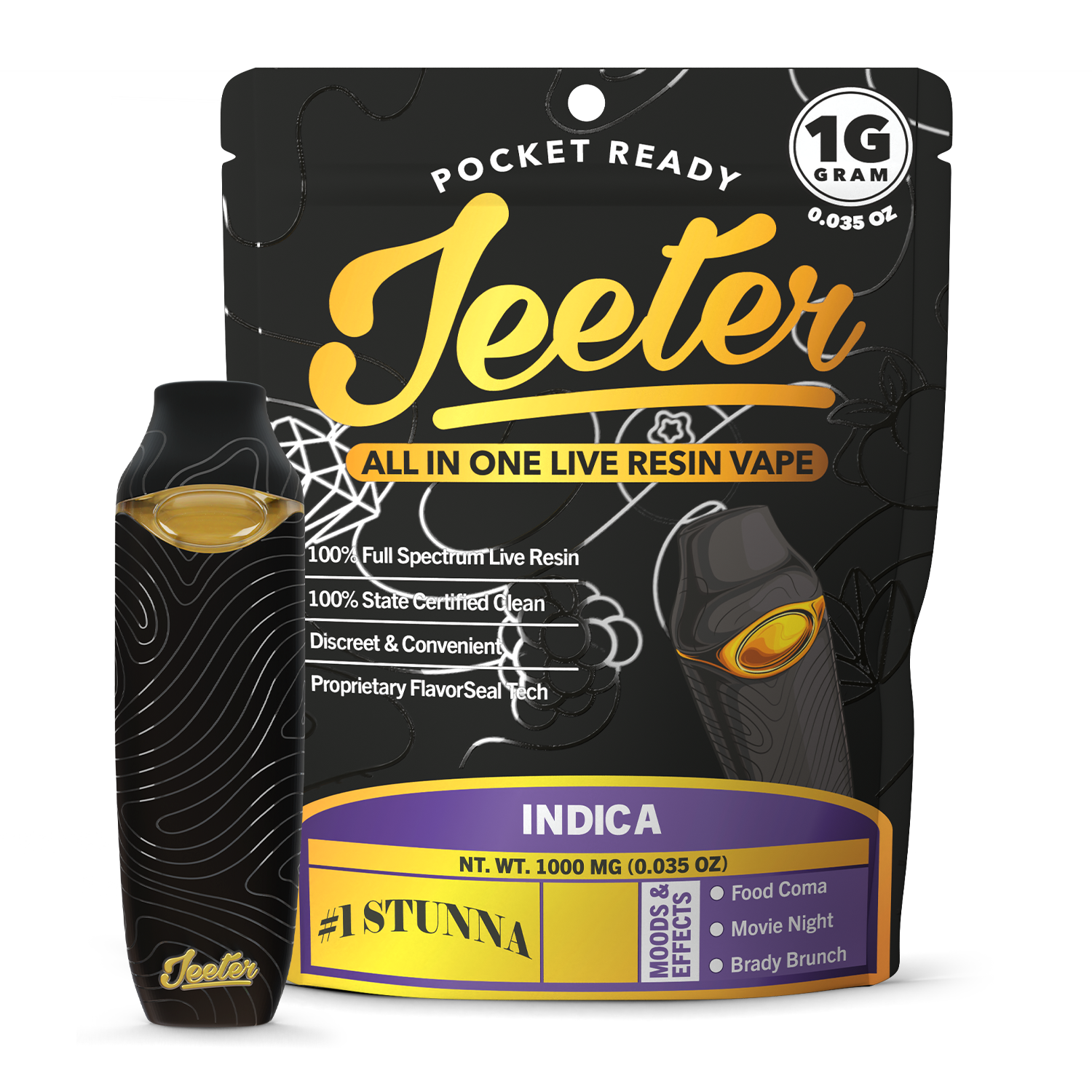 #1 Stunna Live Resin Vape by Jeeter is a premium cannabis vape crafted for those who want a bold, flavourful, and potent vaping experience. Made from fresh-frozen cannabis using advanced live resin extraction, this vape preserves the strainβs full terpene profile, delivering intense aroma, rich flavour, and fast-acting effects in every puff.